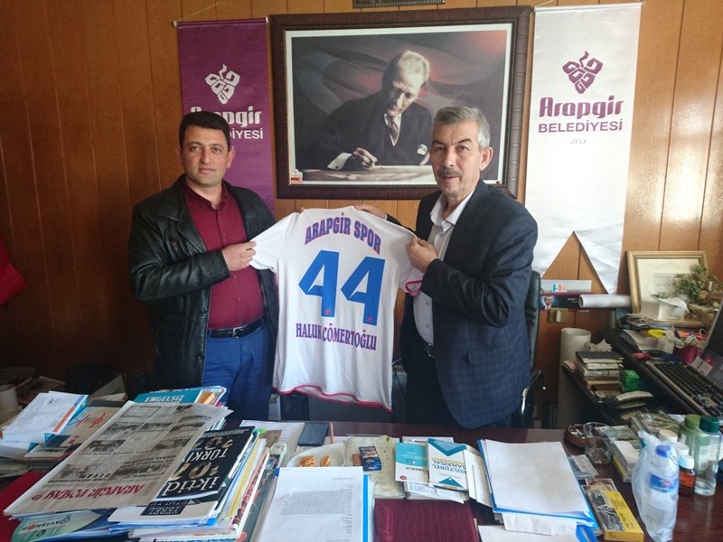 Arapgirspor Klübü Yönetim Kurulu Başkanı Bedir Baykara, yönetim üyeleri Mustafa Gürbüz Bulut, Aytekin Akkaya, Herkül Koçer ve Mustafa Büyükçiftçi ile birlikte Arapgir Belediyesi'ne gelerek Belediye Başkanı Haluk Cömertoğlu'na takımın bu sezonda kullanacağı üzerinde "HALUK CÖMERTOĞLU" yazan formasını hediye etti. Başkan Haluk Cömertoğlu heyete teşekkürlerini ileterek, geçmişten günümüze kadar Arapgirspor Klübünü desteklediklerini, desteklerinin bundan sonra da devam edeceğini belirtti. Bu yıl, yeni sezon için hazırlıklara başlayan takıma başarılar dilediğini iletti. Yönetim Kurulu Başkanı Bedir Baykara da desteklerinden ötürü Arapgir Belediye Başkanı Haluk Cömertoğlu'na teşekkür etti.